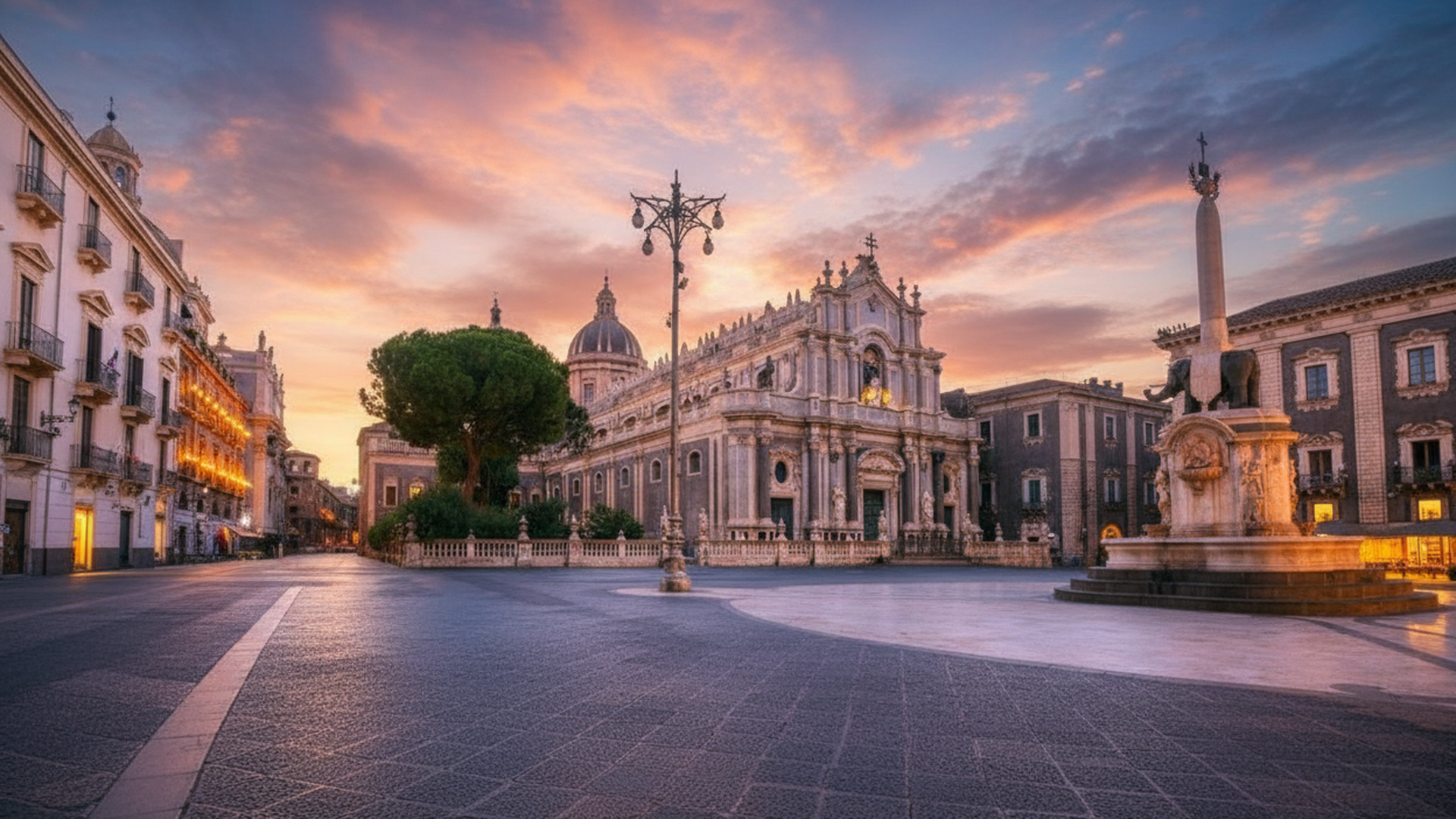Il cuore pulsante di Catania, con la sua imponente Cattedrale e la Fontana dell'Elefante, simbolo della città.